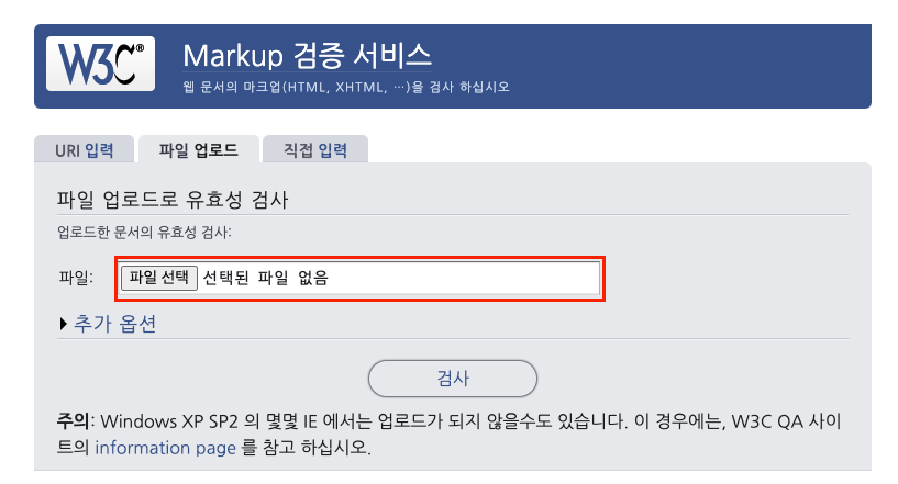 Markup Validator는 마크업을 완료한 후에 마크업에 오류가 있는지 없는지 확인할 수 있는 사이트 입니다.