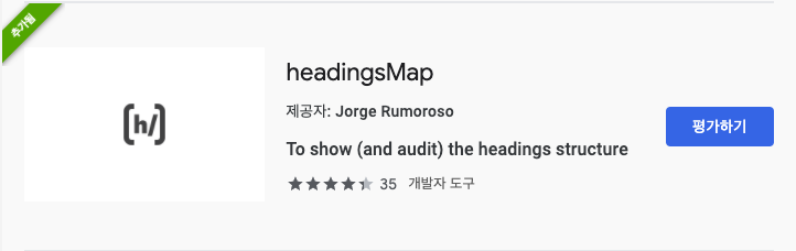 이거는 사이트는 아니고 크롬 확장프로그램입니다. 페이지의 헤딩 구조를 알 수 있는 확장프로그램으로 페이지를 만든 후에 페이지의 아웃라인이 구조에 맞게 만들어졌는지 확인할 수 있는 확장프로그램입니다.