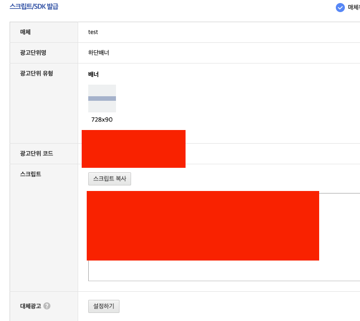 이렇게 스크립트를 넣어주시면 끝입니다. 이제 카카오 애드핏에서 보류 및 승인이 날 때 까지 기다리시면 됩니다.