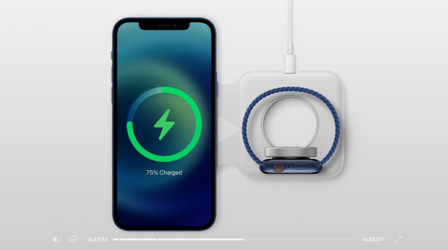 애플의 무선충전 방식이 이제 변경되었는데요. 기존에 중앙에 정확히 놓지 못하면 충전이 되지 않는 문제를 해결하기 위해 애플워치나 과거의 맥북처럼 자석처럼 붙이는 무선 충전기를 사용했습니다. 최대 15W까지 지원한다고 하네요.